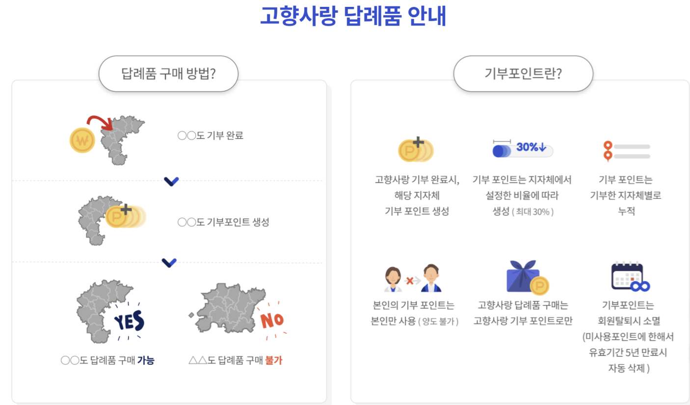 -답례품 기부금액의 30% 한도 내에서 제공으로 지역 특산품이나 지역상품권 등으로 구성