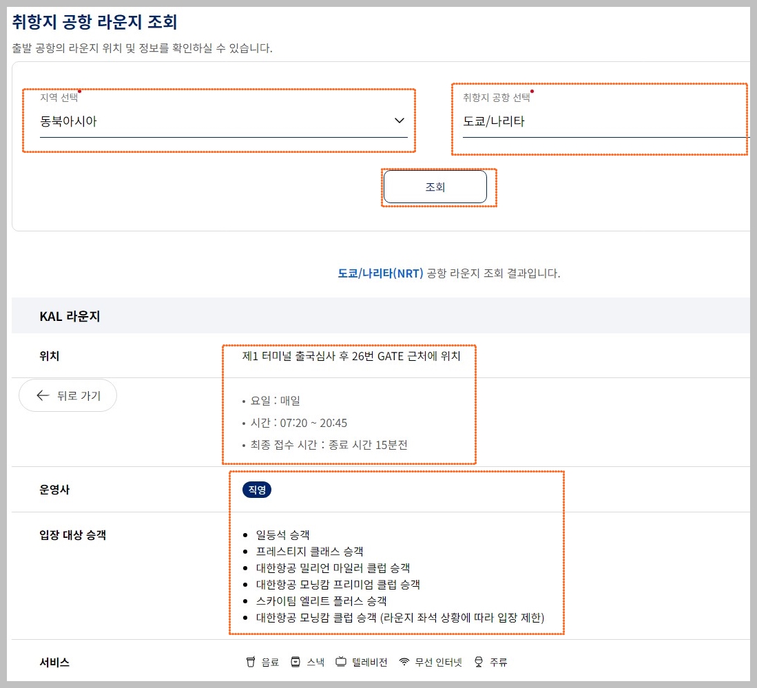 위의 링크를 통해 대한항공 취항지 공항에서 KAL라운지를 이용할 수 있는데요 출발공항의 라운지의 위치와 정보를 알 수 있습니다. 하단의 이미지는 예시입니다.